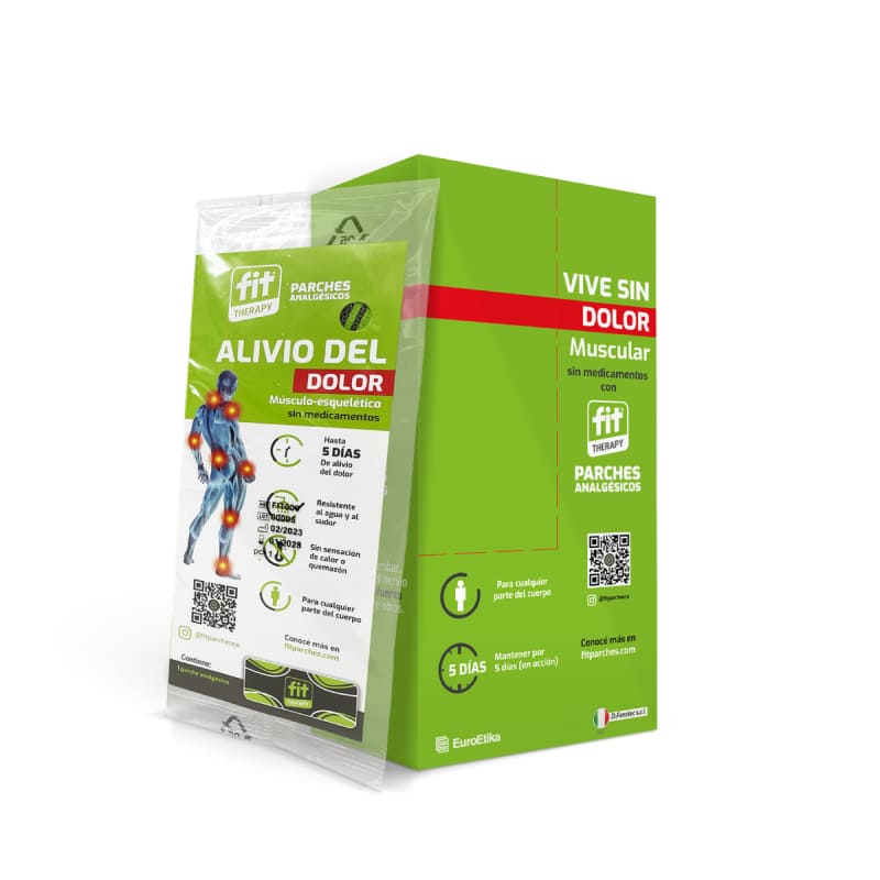 Fit® Therapy patches promote muscle pain relief without medication. Therefore, they are indicated in all cases where there is a need to eliminate toxins that have accumulated in the muscle, one of the causes of pain. Useful in muscular and/or joint problems such as low back pain, neck pain, contractures, osteoarthritis, arthritis, knee pain, gonalgia, tendonitis, bruises, sprains and pain during the menstrual cycle. Fit® Therapy patches are water and sweat resistant, do not contain medication, do not generate doping, do not generate a sensation of heat and/or burning, do not limit movement, can be placed on any part of the body where there is muscle pain, are easy to apply and can be used for up to 5 days.